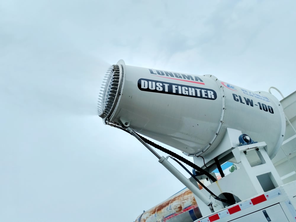 雾炮车对空气质量选择的雾炮机射程可选配50-120米等规格,广西抑尘除霾车储水罐体容积16立方,雾炮车具有洒水车的全部功能:前冲、后洒、侧喷、绿化高炮,其主要应用于喷雾降尘、空气净化、园林绿化、市政环卫、消毒杀菌、农药喷洒等用途,该车辆型号CLW5250TDYYT6,雾炮喷雾作业可远程遥控操作,广西抑尘除霾车底盘采用东风原厂底盘,底盘型号DFV1253GP6DJ,底盘发动机